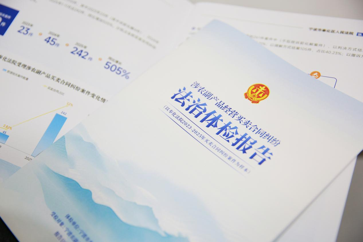 如何讓專業(yè)的法律分析“飛入尋常百姓家”,真正起到“審理一案、治理一片”的效果,奉化區(qū)人民法院決定在形式上來點(diǎn)“新花樣”。2025年12月,部分市、區(qū)兩級(jí)人大代表、政協(xié)委員與經(jīng)營戶代表齊聚奉化區(qū)人民法院方橋法庭,共同見證了《涉農(nóng)副產(chǎn)品經(jīng)營買賣合同糾紛法治體檢報(bào)告》的發(fā)布。