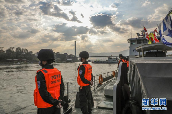 2月23日,第102次中老緬泰湄公河聯(lián)合巡邏執(zhí)法編隊(duì)啟航,中方執(zhí)法艇編隊(duì)巡航經(jīng)過瀾滄江景哈水域。 新華社發(fā)(張壽晨 攝)