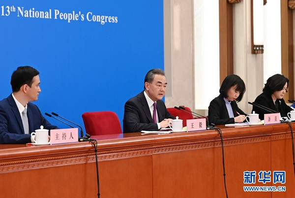 3月7日,十三屆全國人大四次會議在北京人民大會堂新聞發(fā)布廳舉行記者會,邀請國務(wù)委員兼外交部長王毅就“中國外交政策和對外關(guān)系”相關(guān)問題回答中外記者提問。為有效防控疫情,共同維護公共衛(wèi)生與健康,記者會采用網(wǎng)絡(luò)視頻形式進行。 新華社記者 陳曄華 攝