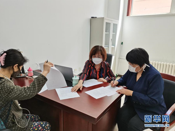 天津市和平區(qū)信訪事項人民調解委員會主任王玉珍(中)對雙方當事人進行調解(2020年5月13日手機拍攝)。新華社發(fā)