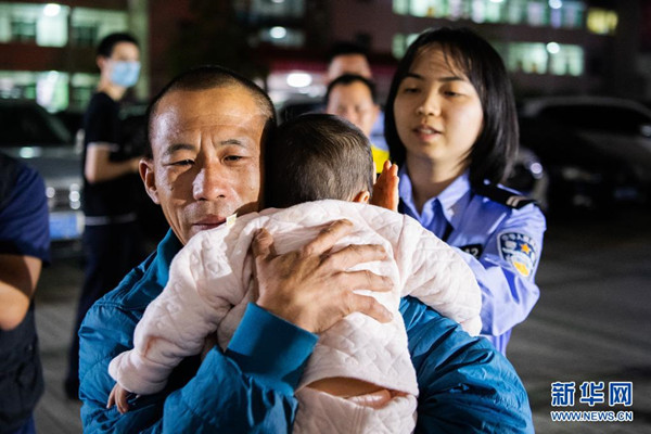 4月20日,廣東梅州警方快速行動(dòng)解救一名9個(gè)月大的嬰兒。圖為解救成功后,嬰兒在家人懷抱里(4月21日攝, 廣東省公安廳供圖)。新華社發(fā)