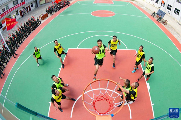 10月2日,武警廣西總隊(duì)新兵團(tuán)組織新兵進(jìn)行籃球比賽。新華社發(fā)(余海洋 攝)