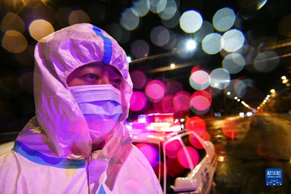11月8日,在哈爾濱市平房區(qū)一進(jìn)出城卡點(diǎn),一名公安人員在凍雨中執(zhí)勤。