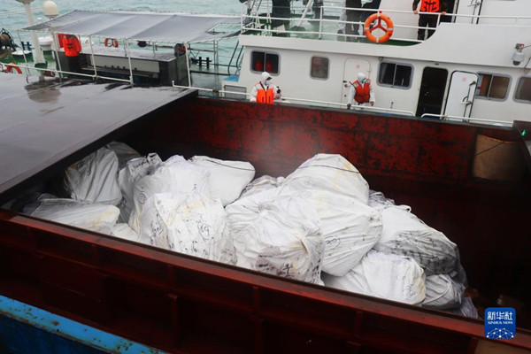 廣東海警局執(zhí)法員清點(diǎn)涉案凍品(3月16日攝)。新華社發(fā)(楊祖昌 攝)