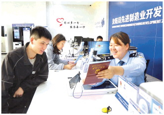 近日,河南省汝陽縣公安局在先進制造業(yè)開發(fā)區(qū)建設(shè)公安政務(wù)服務(wù)大廳并設(shè)立“一窗通辦”窗口,把服務(wù)送到企業(yè)和群眾“家門口”。圖為5月22日,民警在“一窗通辦”窗口為群眾辦理戶籍業(yè)務(wù)。
