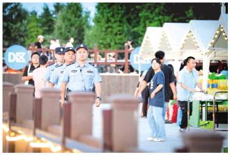 7月18日晚,2023烏巾蕩啤酒龍蝦節(jié)在江蘇大公園(興化)正式開幕,現(xiàn)場1040個(gè)座位座無虛席。為了守護(hù)夏日煙火氣,護(hù)航本地夏日經(jīng)濟(jì),興化市公安局提前謀劃周密部署,每日出動(dòng)警力150余人次,以“定人、定崗、定責(zé)”工作原則,確?;顒?dòng)安全有序進(jìn)行。圖為執(zhí)勤警力在現(xiàn)場巡邏。