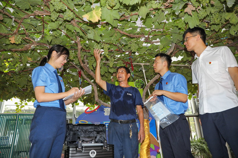 浙江上虞檢察院檢察官近日對(duì)野藤葡萄現(xiàn)場(chǎng)取樣