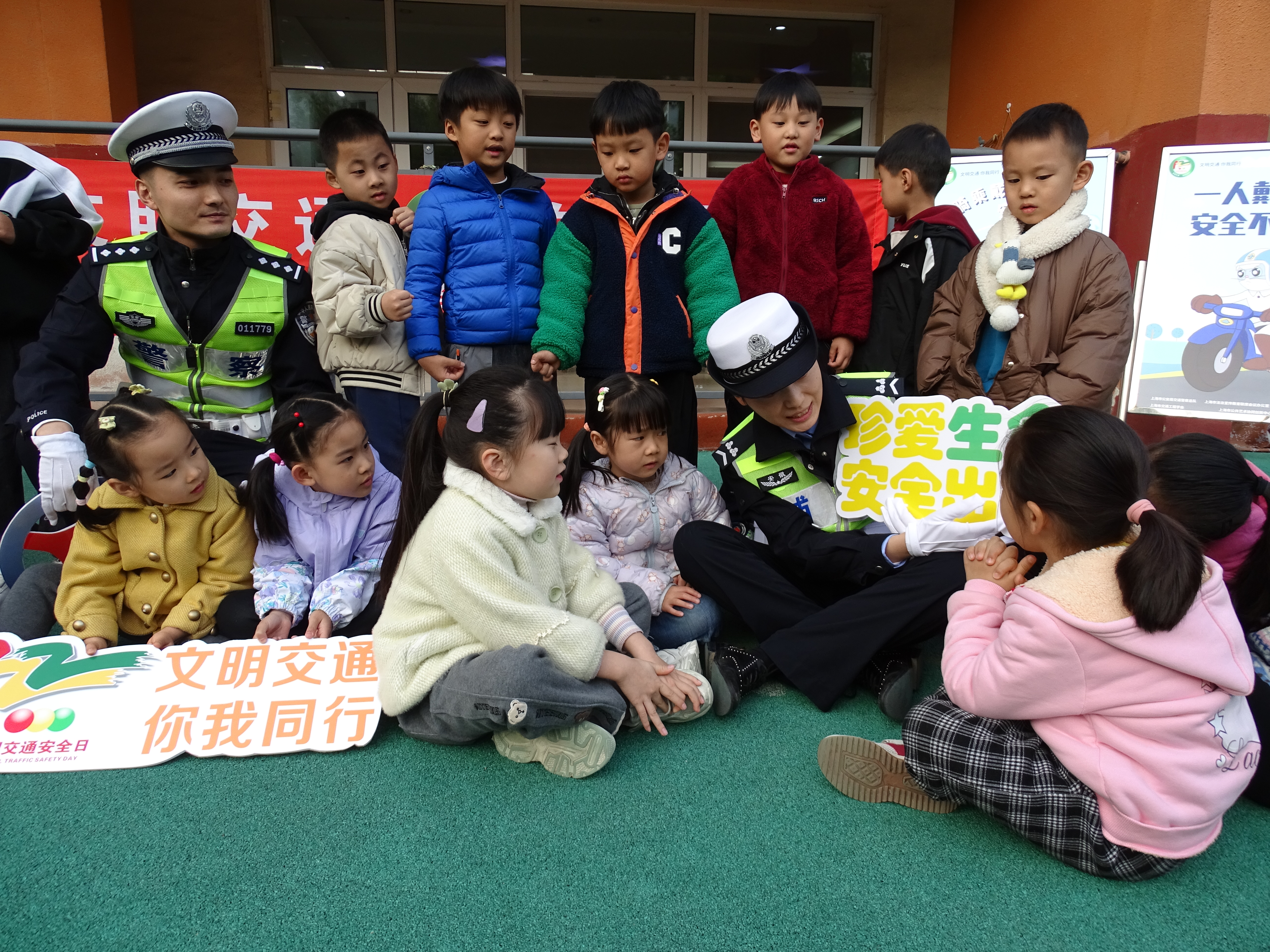 11月23日,安徽省蕪湖市公安局交警支隊鏡湖大隊組織開展“文明交通、你我同行”主題交通安全宣傳活動。交警走進轄區(qū)環(huán)城南路幼兒園,通過互動問答等方式,提高孩子們道路交通安全意識。圖為交警向孩子們講解交通安全知識。