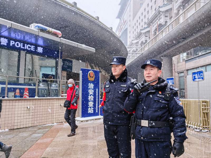 12月13日,北京出現(xiàn)強降雪天氣,北京鐵路公安處組織管內(nèi)車站派出所加強站內(nèi)客流疏導(dǎo)和秩序維護工作,并部署鐵路沿線派出所加強巡邏巡視,排除安全隱患。圖為民警在北京西站維護秩序。