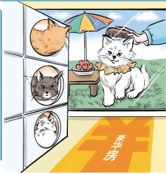 在了解寄養(yǎng)房間的規(guī)格后,她更加震驚:標(biāo)準(zhǔn)間就是一個(gè)寵物柜,一大排柜子排在一起,空間不是很大。當(dāng)她和商家說寵物平時(shí)是放養(yǎng)的后,商家建議她用最豪華的寵物柜,每天有3次半小時(shí)的放養(yǎng)“遛彎”時(shí)間,貓糧、貓罐頭、貓砂等生活用品價(jià)格另算,洗澡、美容等服務(wù)價(jià)格也不包括在內(nèi)。