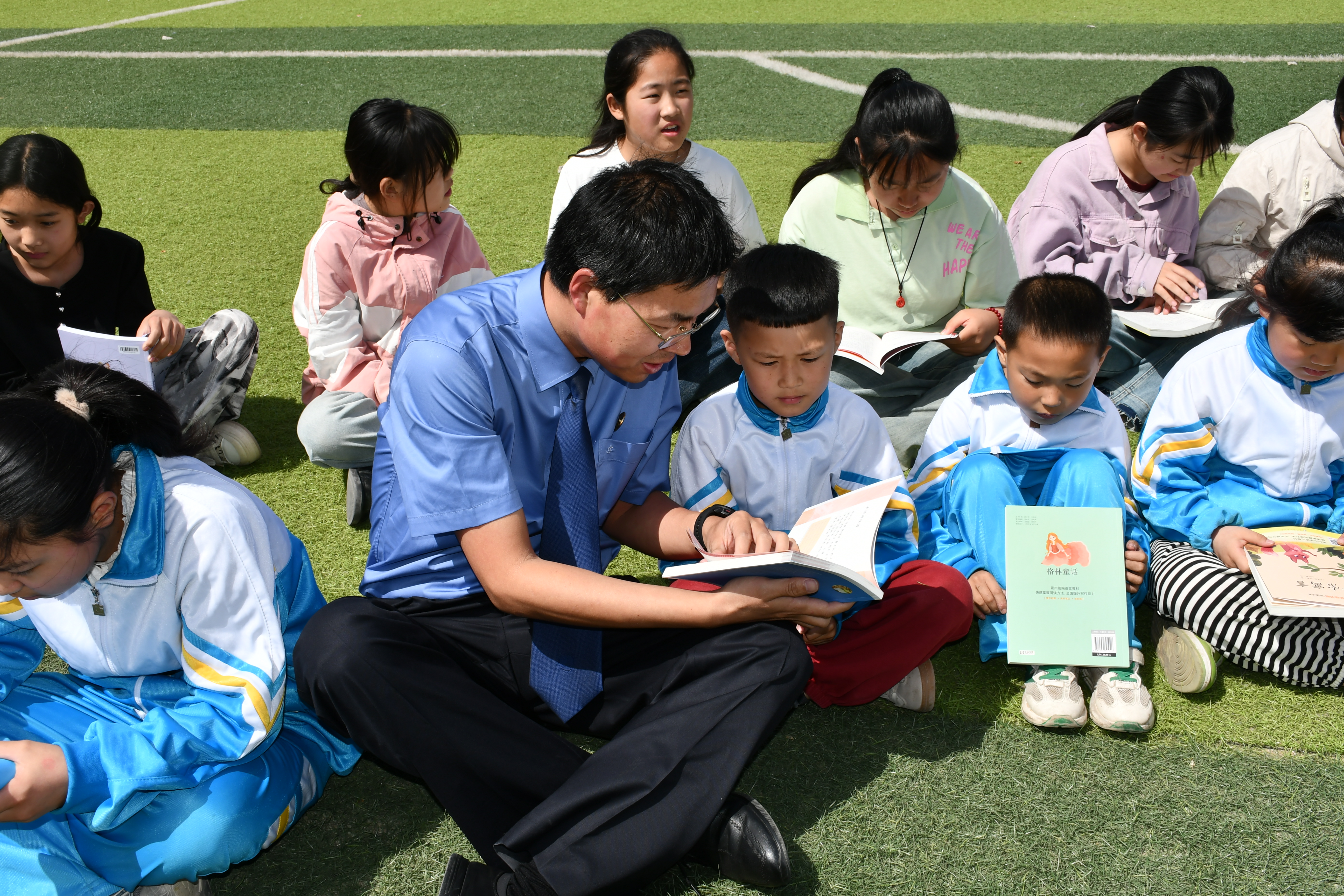 4月23日,河北省邯鄲市廣平縣人民檢察院干警走進平固店鎮(zhèn)中心小學開展“檢愛傳校園 書香潤童年”讀書分享活動。圖為干警帶領學生們認真閱讀精心挑選的圖書。