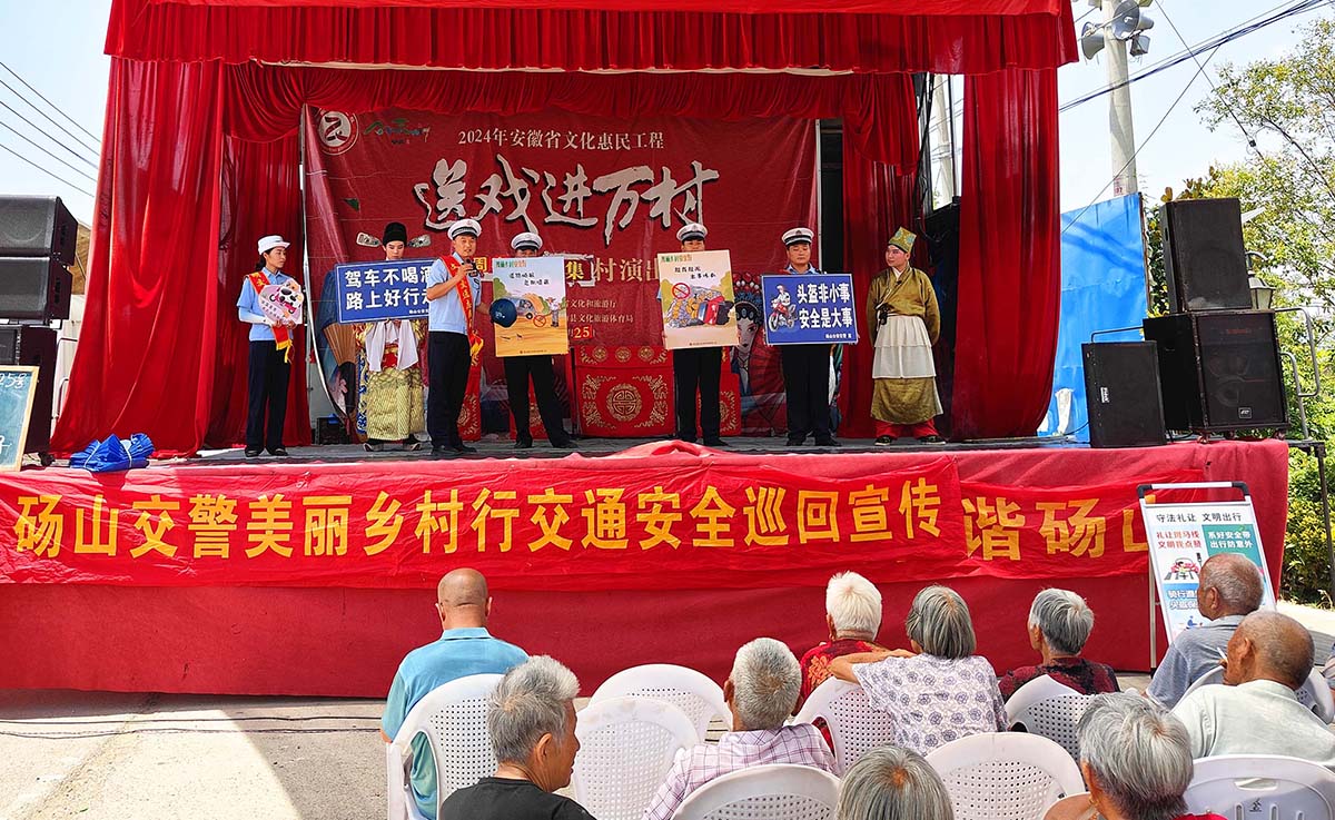 7月9日,安徽省碭山縣公安局交警大隊(duì)借助當(dāng)?shù)匚幕锣l(xiāng)活動,組織警力開展“美麗鄉(xiāng)村行”交通安全巡回宣傳活動,提升農(nóng)村地區(qū)群眾的交通安全意識。圖為宣傳活動現(xiàn)場。