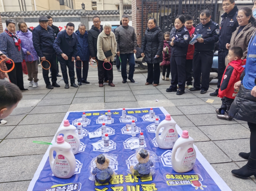 為提升群眾識騙防騙能力,江西省遂川縣公安局近日在社區(qū)廣場開展趣味反詐系列活動(dòng),以更接地氣、更貼近群眾的方式,將反詐知識傳遞給群眾。圖為群眾參與反詐“套圈”游戲。