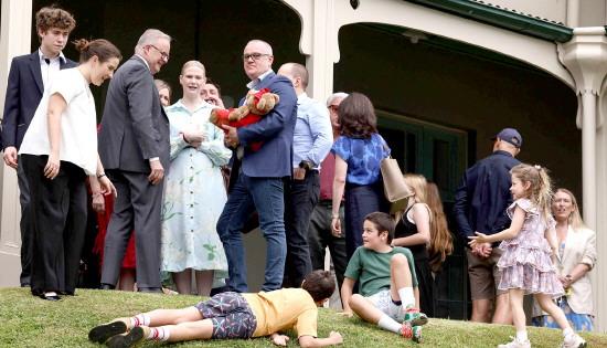 當?shù)貢r間2025年12月10日,澳大利亞總理安東尼·阿爾巴尼斯(左三)在基里比利大廈舉行的一場官方活動中與嘉賓交談,該活動標志著澳大利亞社交媒體改革的開始。澳大利亞于當日實施了一項全球首創(chuàng)的禁令,禁止未成年人使用社交媒體,并宣布是時候從強大的科技巨頭手中“奪回控制權”。 CFP供圖