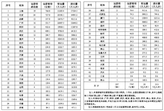 5月,全國(guó)(不含港澳臺(tái),下同)共有45個(gè)城市開通運(yùn)營(yíng)城市軌道交通線路237條,運(yùn)營(yíng)里程7747公里,實(shí)際開行列車263萬列次,完成客運(yùn)量22億人次,進(jìn)站量13.3億人次,未發(fā)生較大以上運(yùn)營(yíng)安全責(zé)任事故。