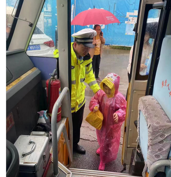 5月25日起,河南省鄭州市連續(xù)幾日陰雨天。為確保惡劣天氣下校車的出行安全,鄭州交警五支隊四大隊大隊長程育龍?zhí)崆皽贤ㄝ爡^(qū)金水區(qū)吉貝爾幼兒園,詳細了解學(xué)校的具體位置、上學(xué)時間、班級數(shù)量、學(xué)生人數(shù)、校車情況等信息,挑選出公路(街道)沿線行駛路線長的一部校車“跟車護送”,全力保障學(xué)生出行安全。