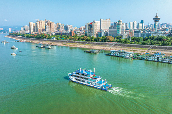 10月11日,“三峽氫舟1”號行駛在長江湖北宜昌水域。肖藝九/攝