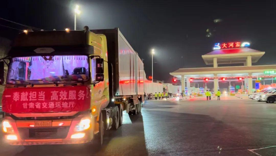 運(yùn)送救援物資的貨車(chē)車(chē)隊(duì)連夜趕赴積石山災(zāi)區(qū)