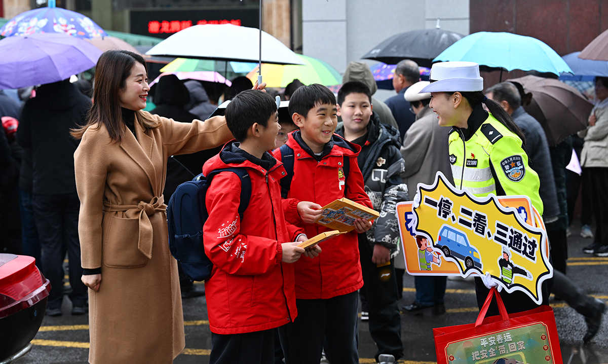 2月20日,江蘇省中小學(xué)開(kāi)學(xué)報(bào)到第一天,恰逢春雨滿(mǎn)江南,江蘇省宜興市公安局交警大隊(duì)組織警力,采取錯(cuò)峰出行,單向行車(chē)等措施,確保入學(xué)時(shí)段車(chē)輛人員安全。