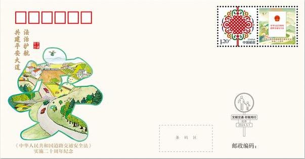 《中華人民共和國道路交通安全法》于2003年10月28日由第十屆全國人民代表大會常務委員會第五次會議通過,2004年5月1日起實施。20年來,我國相繼頒布實施《道路交通安全法實施條例》等一系列行政法規(guī),目前已經(jīng)形成了完善的道路交通安全法律體系,在維護道路交通秩序、預防和減少交通事故、保護人民群眾生命財產(chǎn)安全方面發(fā)揮了重要作用。警郵雙方為紀念《中華人民共和國道路交通安全法》實施20周年,特別發(fā)布了紀念郵品,并通過郵票這一經(jīng)典文化載體,傳播“自律、包容、禮讓、文明”的交通安全文化,推動社會各界、人民群眾更加了解《中華人民共和國道路交通安全法》,推動形成關心支持法治文明交通建設的良好氛圍。