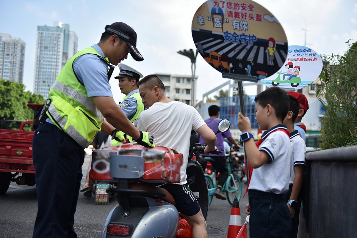 8月24日早,四川省綿陽市公安局交警支隊(duì)直屬一大隊(duì)與轄區(qū)小學(xué)共同組織開展文明交通勸導(dǎo)體驗(yàn)活動(dòng),進(jìn)一步提高小學(xué)生的交通安全意識(shí)。