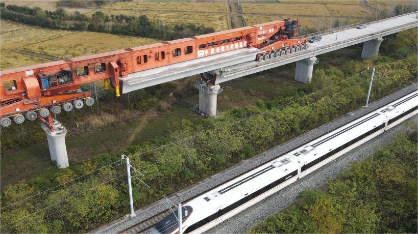 這是中國(guó)鐵建大橋局新建滬寧合高鐵箱梁架設(shè)現(xiàn)場(chǎng)。