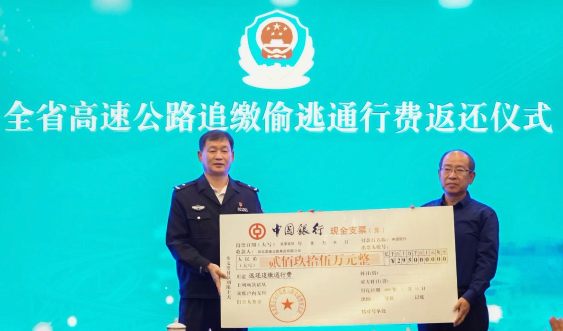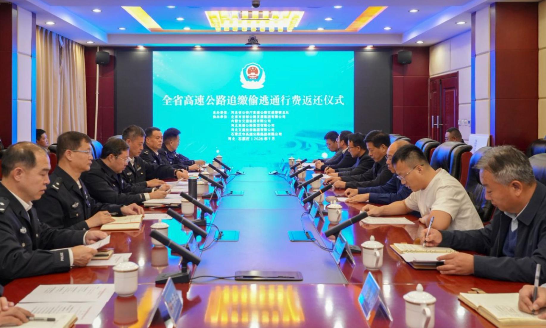 為集中展示高速交警依法刑事打擊涉交類(lèi)違法犯罪專(zhuān)項(xiàng)行動(dòng)成效,1月3日,河北省高速交警總隊(duì)舉辦全省高速公路追繳偷逃通行費(fèi)返還儀式,向河北高速集團(tuán)、河北交投集團(tuán)、北京首發(fā)集團(tuán)、內(nèi)蒙古交通集團(tuán)、石家莊市高速集團(tuán)5家業(yè)主單位返還追繳偷逃通行費(fèi)550萬(wàn)元。
