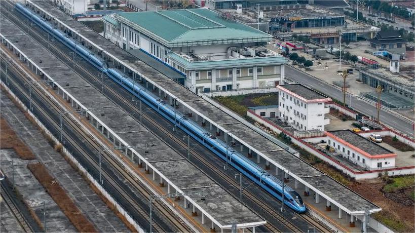 2月5日,務工專列D3832次列車駛出廣南縣站。彭奕凱/攝