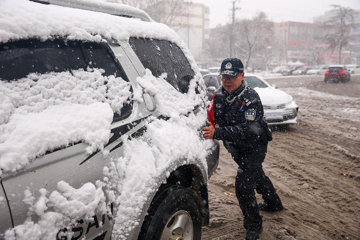 3月2日,受寒潮影響,山東省濟(jì)南市出現(xiàn)大風(fēng)降溫雨雪天氣。濟(jì)南市公安局市中區(qū)分局立即啟動(dòng)惡劣天氣應(yīng)急預(yù)案,組織警力在重點(diǎn)路段、十字路口執(zhí)勤巡邏,為市民提供服務(wù),確保群眾出行安全。