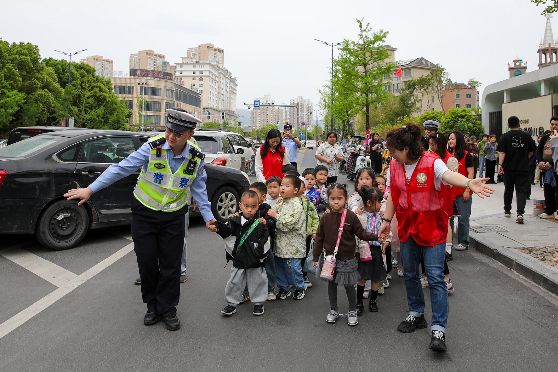 4月16日,浙江省臺(tái)州市公安局交警局直屬二大隊(duì)民警和西城街道西江社區(qū)工作人員一起站好護(hù)學(xué)崗,維護(hù)校園周邊交通、治安秩序。