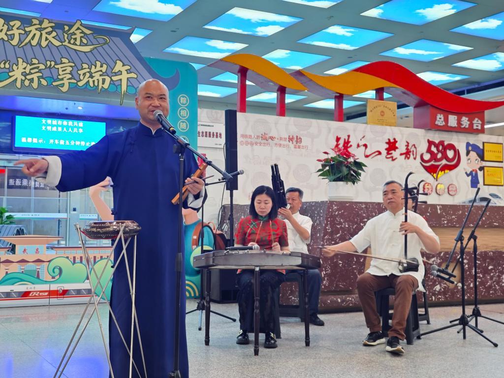 圖為在湖北武昌站演出的湖北大鼓《有意思》。(國鐵武漢局集團(tuán)公司供圖)