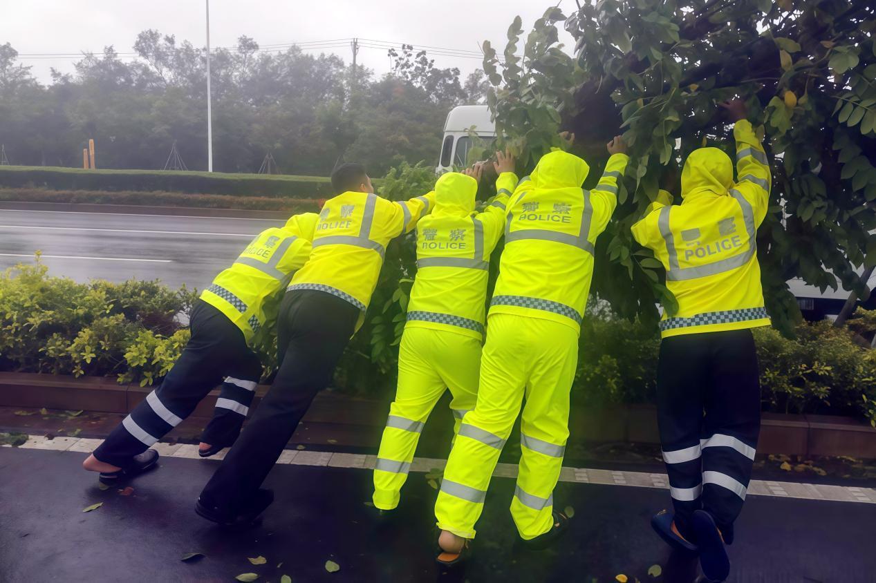 風雨中,那一抹抹“熒光綠”格外醒目,扶正加固被吹倒的隔離護欄、徒手清理倒伏樹枝和路面雜物、及時疏通排水口確保道路暢通……暴雨模糊了視線,警笛穿透了風聲,那抹熒光綠時而俯身搶險,時而挺立指揮,在白茫茫的雨幕中勾勒出最動人的剪影。