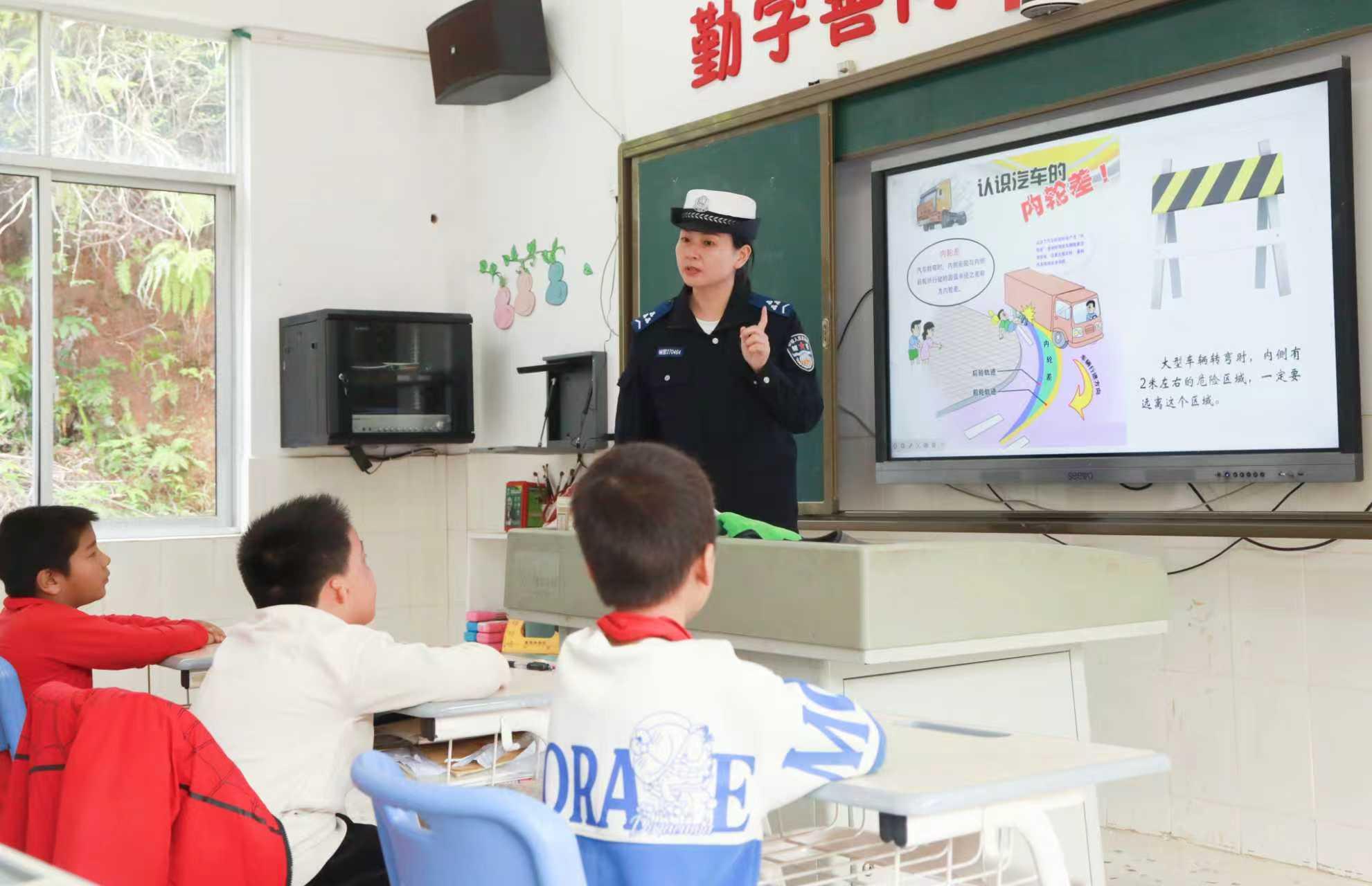10月24日,江西省贛州市公安局交通管理支隊(duì)章貢大隊(duì)民警走進(jìn)轄區(qū)一所僅有5名學(xué)生的鄉(xiāng)村小學(xué),開展“知危險(xiǎn) 會避險(xiǎn)”交通安全宣講,并向?qū)W生贈送書包和安全頭盔。