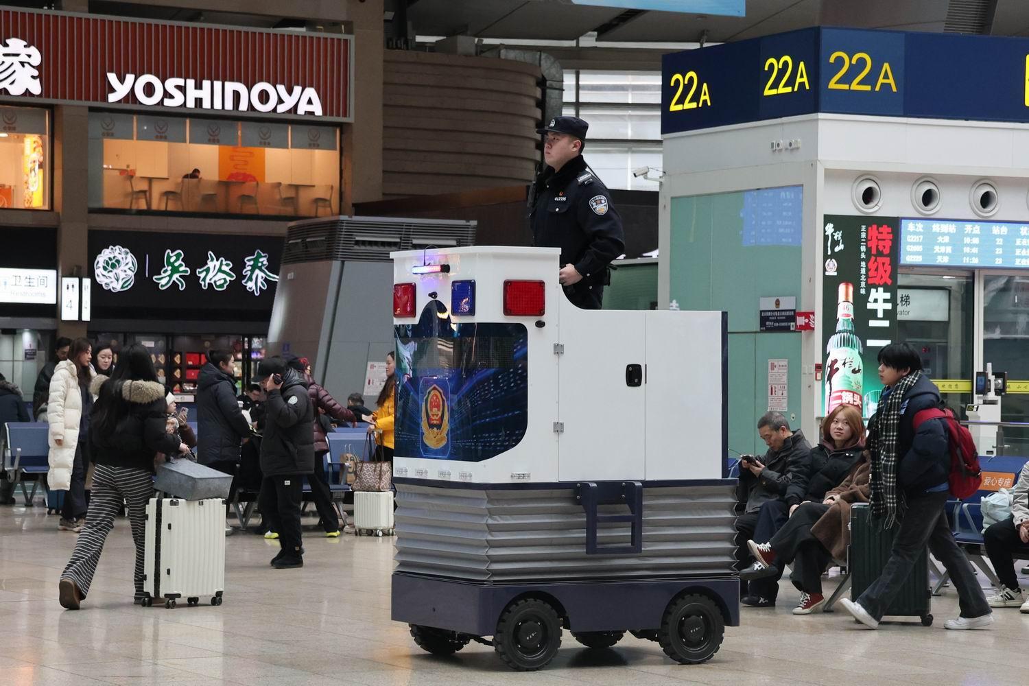 據(jù)北京鐵路公安處相關(guān)負(fù)責(zé)人介紹,為了解決此前北京南站、北京西站候車區(qū)因面積廣而導(dǎo)致“求助難”的情況,北京鐵警自2025年底在客流量大的車站醒目位置梯次投放了智能瞭望崗、多功能巡邏車等警用設(shè)施,通過高處“鷹眼”與地面“快腿”結(jié)合,使派出所對轄區(qū)全域有了更強的“掌控力”,同時顯著提升了為民服務(wù)的效率。通過點線結(jié)合的崗位模式,北京鐵路公安民警可以第一時間發(fā)現(xiàn)并響應(yīng)突發(fā)情況,確保警力快速集結(jié)、高效處置,推動警務(wù)工作向主動預(yù)防、精準(zhǔn)服務(wù)轉(zhuǎn)型。