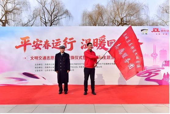 最后,出席活動(dòng)的濟(jì)南交警支隊(duì)、歷下區(qū)交警大隊(duì)負(fù)責(zé)人等共同為“泉城快遞文明交通志愿服務(wù)團(tuán)”授旗,并為志愿者代表佩戴“文明交通志愿者”袖標(biāo),標(biāo)志著這支由快遞員組成的文明交通志愿服務(wù)隊(duì)伍正式成立。春運(yùn)期間,該志愿服務(wù)團(tuán)將化身流動(dòng)的交通安全宣傳站,在走街串巷進(jìn)行配送服務(wù)、連接千家萬(wàn)戶的同時(shí),主動(dòng)傳遞平安出行理念,助力筑牢春運(yùn)交通安全防線。