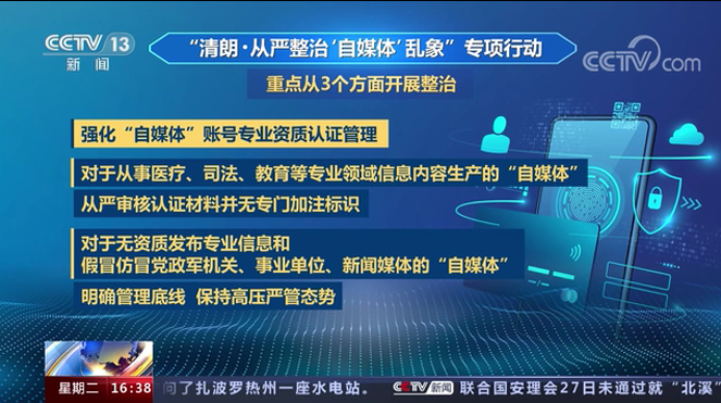 國家網(wǎng)信辦 強(qiáng)化“自媒體”賬號(hào)專業(yè)資質(zhì)認(rèn)證管理