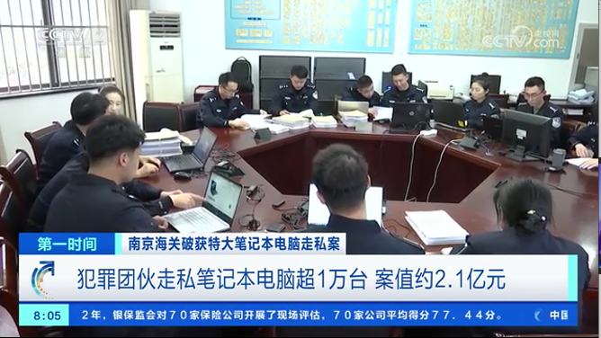 南京海關(guān)破獲特大筆記本電腦走私案 犯罪團(tuán)伙走私筆記本電腦超1萬(wàn)臺(tái) 案值約2.1億元