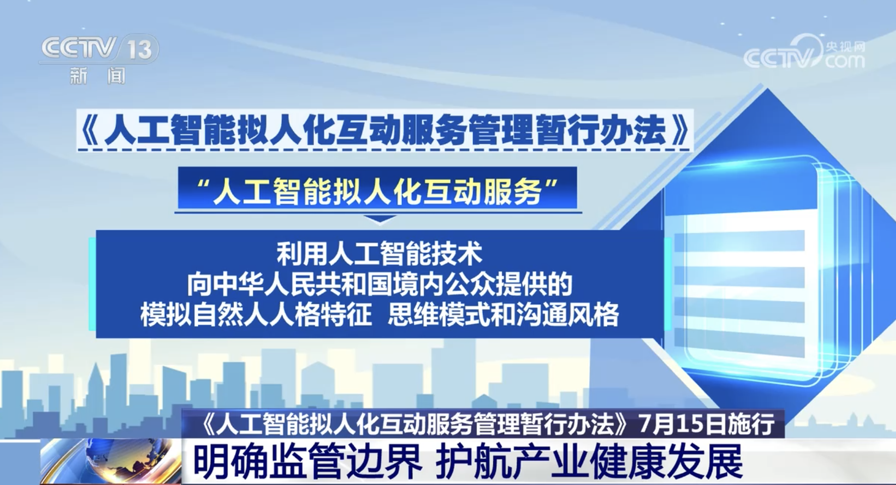 《人工智能擬人化互動(dòng)服務(wù)管理暫行辦法》7月15日施行 明確監(jiān)管邊界 護(hù)航產(chǎn)業(yè)健康發(fā)展