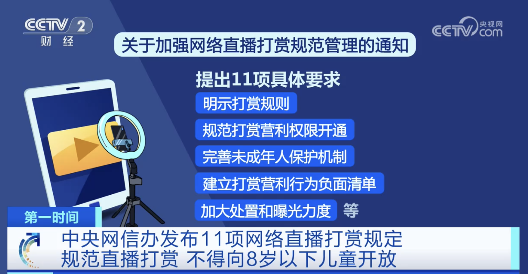 中央網(wǎng)信辦發(fā)布11項(xiàng)網(wǎng)絡(luò)直播打賞規(guī)定 規(guī)范直播打賞 不得向8歲以下兒童開(kāi)放