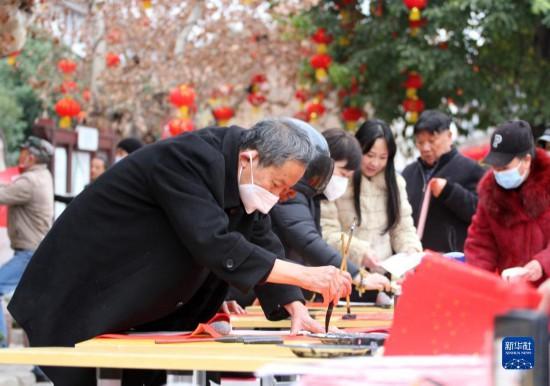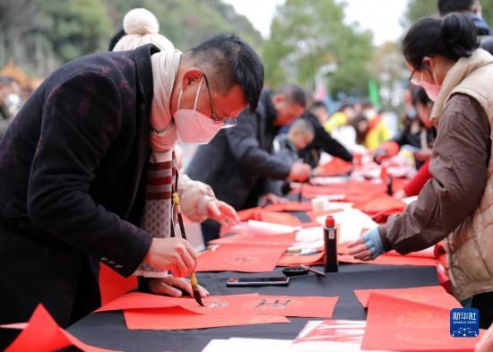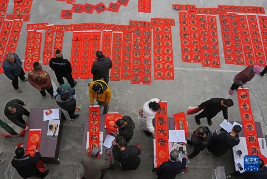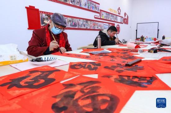 春節(jié)臨近,多地組織書(shū)法志愿者走進(jìn)社區(qū)、工地等場(chǎng)所,為人們書(shū)寫(xiě)春聯(lián)和福字,迎接春節(jié)的到來(lái)。
