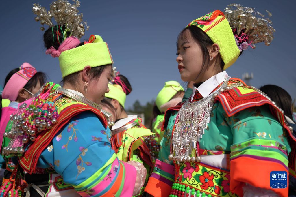 1月29日,苗族姑娘在中排村盛裝參加“跳月”活動。新華社記者 楊文斌 攝
