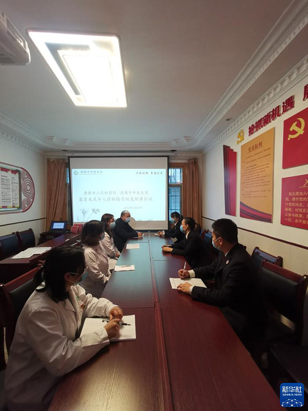 12月16日,貴州省清鎮(zhèn)市檢察機(jī)關(guān)與醫(yī)療機(jī)構(gòu)召開聯(lián)席會議,研究推進(jìn)醫(yī)療機(jī)構(gòu)落實(shí)侵害未成年人案件強(qiáng)制報(bào)告制度。新華社發(fā)(杜遠(yuǎn)敏 攝)