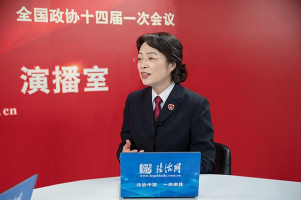 圖為全國政協(xié)委員、最高人民檢察院黨組成員、政治部主任潘毅琴在法治網(wǎng)接受采訪。 韓毅 攝
