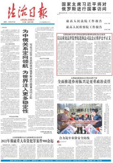 應(yīng)勇指出,檢察機(jī)關(guān)作為國(guó)家的法律監(jiān)督機(jī)關(guān)、保障國(guó)家法律統(tǒng)一正確實(shí)施的司法機(jī)關(guān)和國(guó)家監(jiān)督體系的重要組成部分,各項(xiàng)檢察職能內(nèi)在統(tǒng)一于法律監(jiān)督這一憲法法律賦予的根本職責(zé)。要對(duì)標(biāo)黨中央和人民群眾更高要求,以高質(zhì)效法律監(jiān)督促進(jìn)執(zhí)法司法公正,保護(hù)國(guó)家利益和社會(huì)公眾利益,在社會(huì)主義法治國(guó)家建設(shè)中發(fā)揮特殊重要作用。