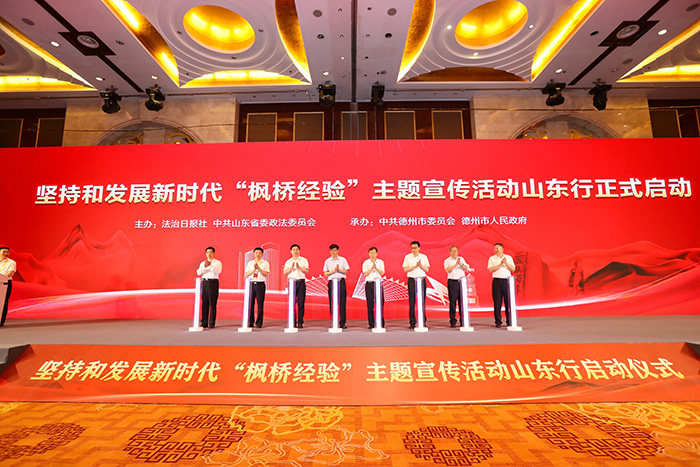 6月20日上午,堅持和發(fā)展新時代“楓橋經(jīng)驗”主題宣傳活動山東行正式啟動。圖為活動現(xiàn)場。