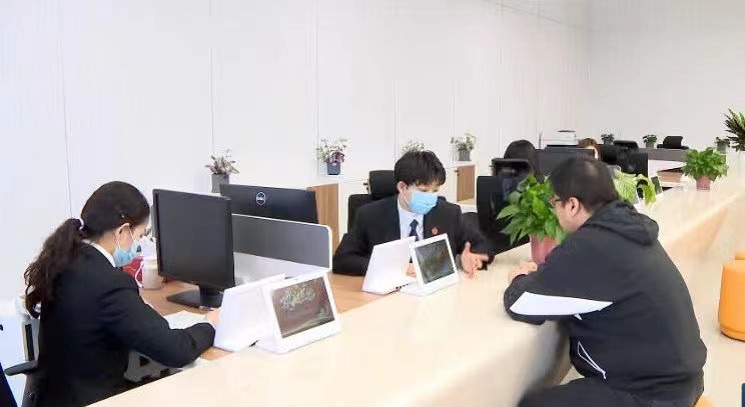 圖為中國(江蘇)自由貿(mào)易試驗(yàn)區(qū)蘇州片區(qū)法律服務(wù)中心工作人員在接受咨詢。