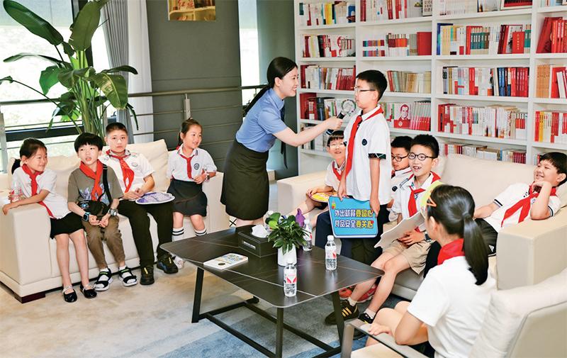 ??全民守法是法治社會(huì)的基礎(chǔ)工程,必須全面落實(shí)“誰(shuí)執(zhí)法誰(shuí)普法”普法責(zé)任制,不斷提升全體公民法治意識(shí)和法治素養(yǎng),使法治成為社會(huì)共識(shí)和基本準(zhǔn)則。圖為2024年7月3日,浙江省湖州市的一批小學(xué)生受邀來(lái)到吳興區(qū)人民檢察院,參加暑期安全普法小課堂。 新華社記者 黃宗治/攝