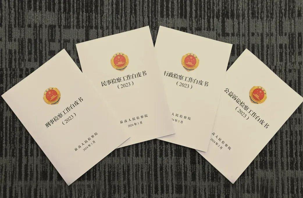 圖為2024年3月9日最高人民檢察院發(fā)布的2023年“四大檢察”工作白皮書。白皮書按照刑事、民事、行政、公益訴訟檢察四個條線,全方位呈現(xiàn)2023年檢察工作新進(jìn)展新成效。最高人民檢察院供圖
