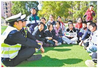 圖為江西省武寧縣公安局交管大隊民警近日走進武寧縣第四小學(xué),開展“文明交通 禮行天下”主題宣傳活動。 熊遙 攝