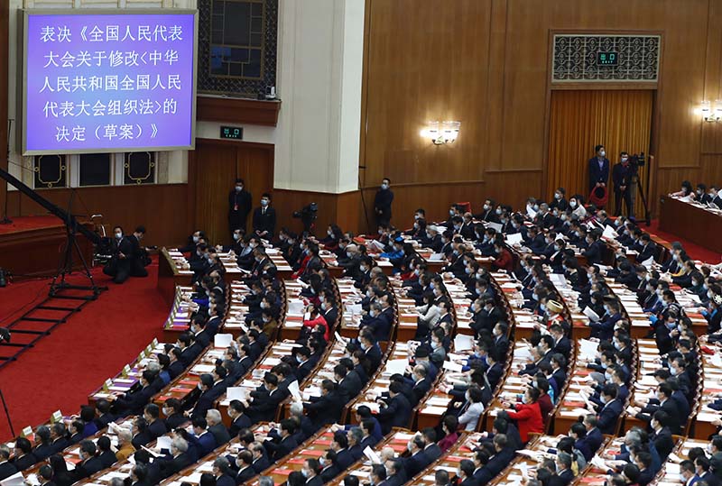 2021年3月11日,十三屆全國人大四次會(huì)議在北京人民大會(huì)堂閉幕。此次會(huì)議對(duì)全國人民代表大會(huì)組織法、全國人民代表大會(huì)議事規(guī)則作出修改。 新華社記者 張玉薇 攝